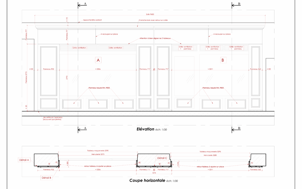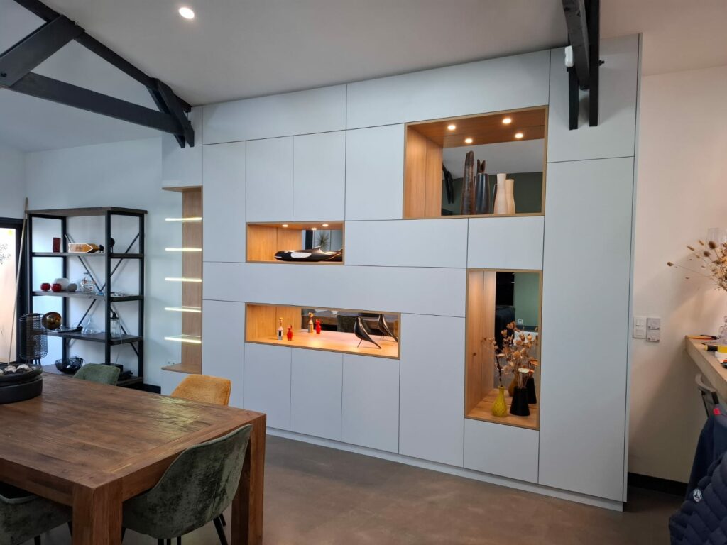 Une fois que nous avons saisi votre vision, nous passons à la phase de dessin. Nous créons des plans détaillés 2D/3D qui incluent les dimensions précises, les matériaux choisis, les systèmes d’ouverture et tous les éléments techniques nécessaires à la fabrication. Ces plans sont la feuille de route pour la création de votre meuble sur mesure.